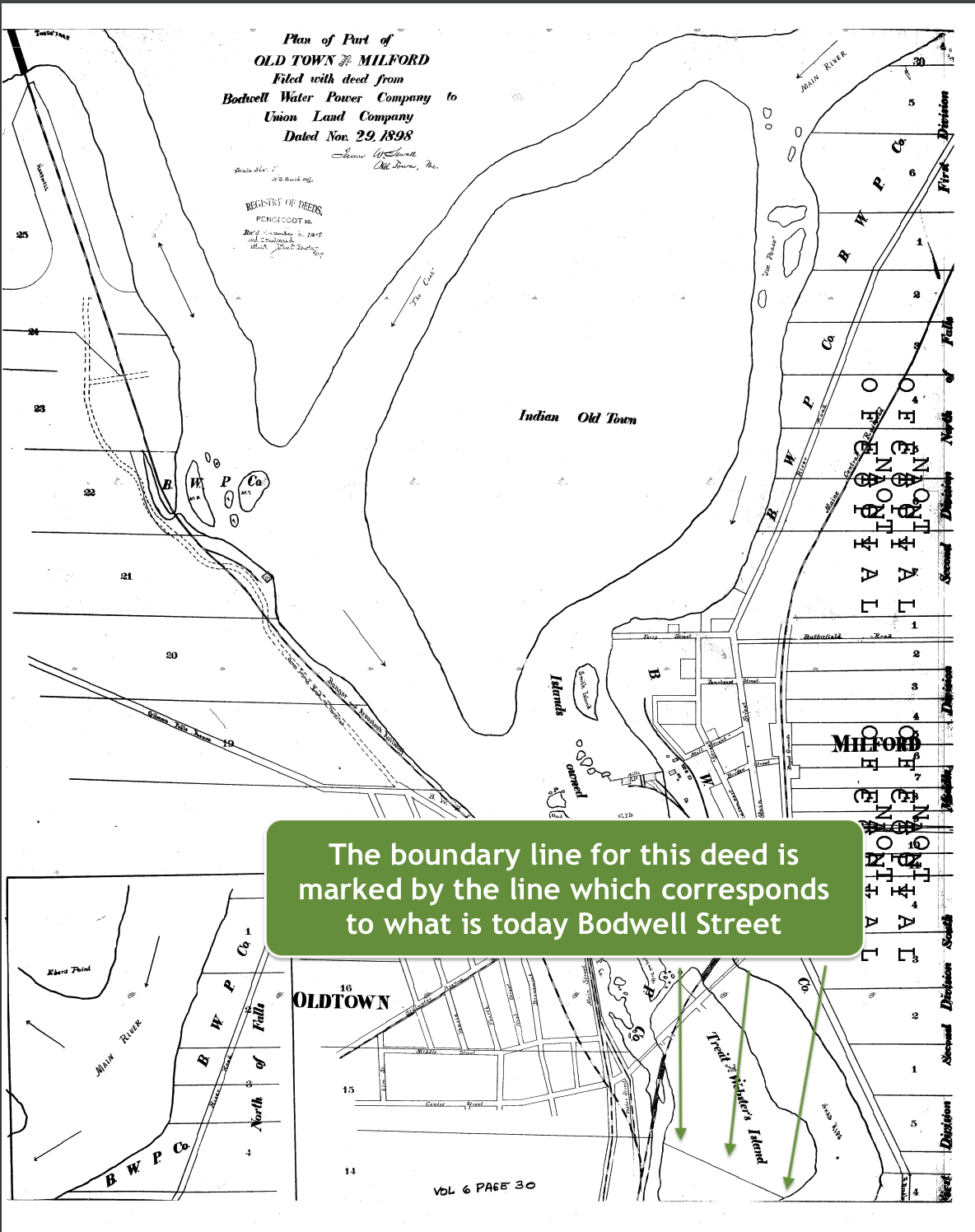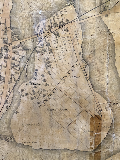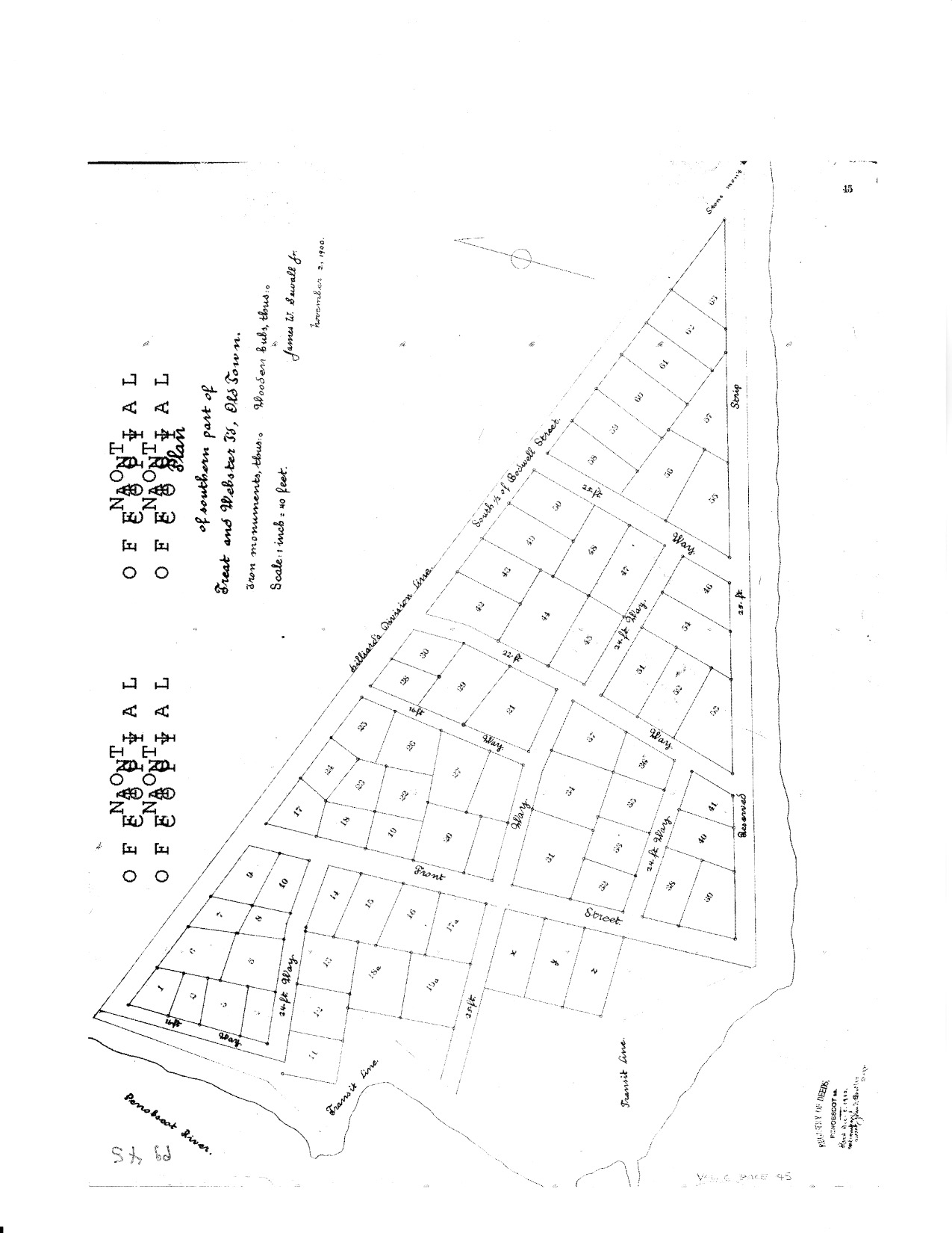 By 1900, the industrious Mr. Sewall had marked out the lots on this section of French Island. Business was good (see here). Most of the lot layouts have stayed the same, though they are all numbered differently today.